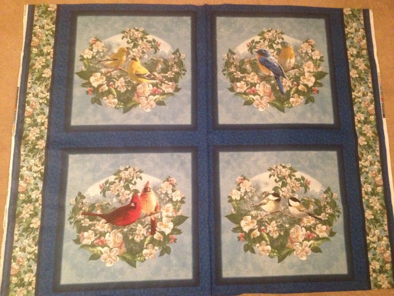 Winter Bird Cotton Fabric Cushion Panel With Four Designs